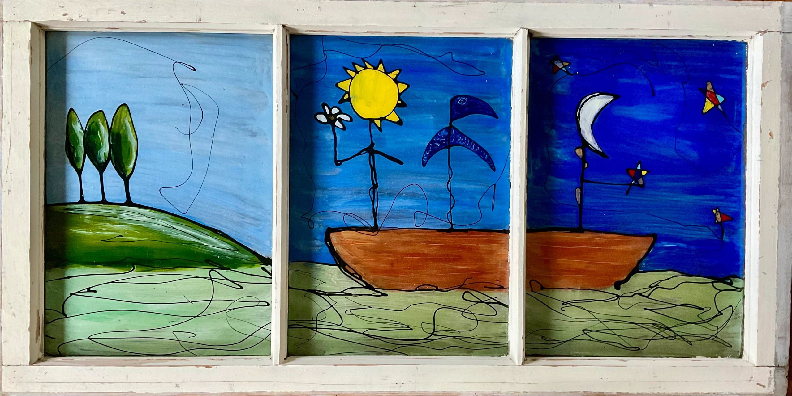 Journey to the beginning of the universe (24x48), mixed media on window