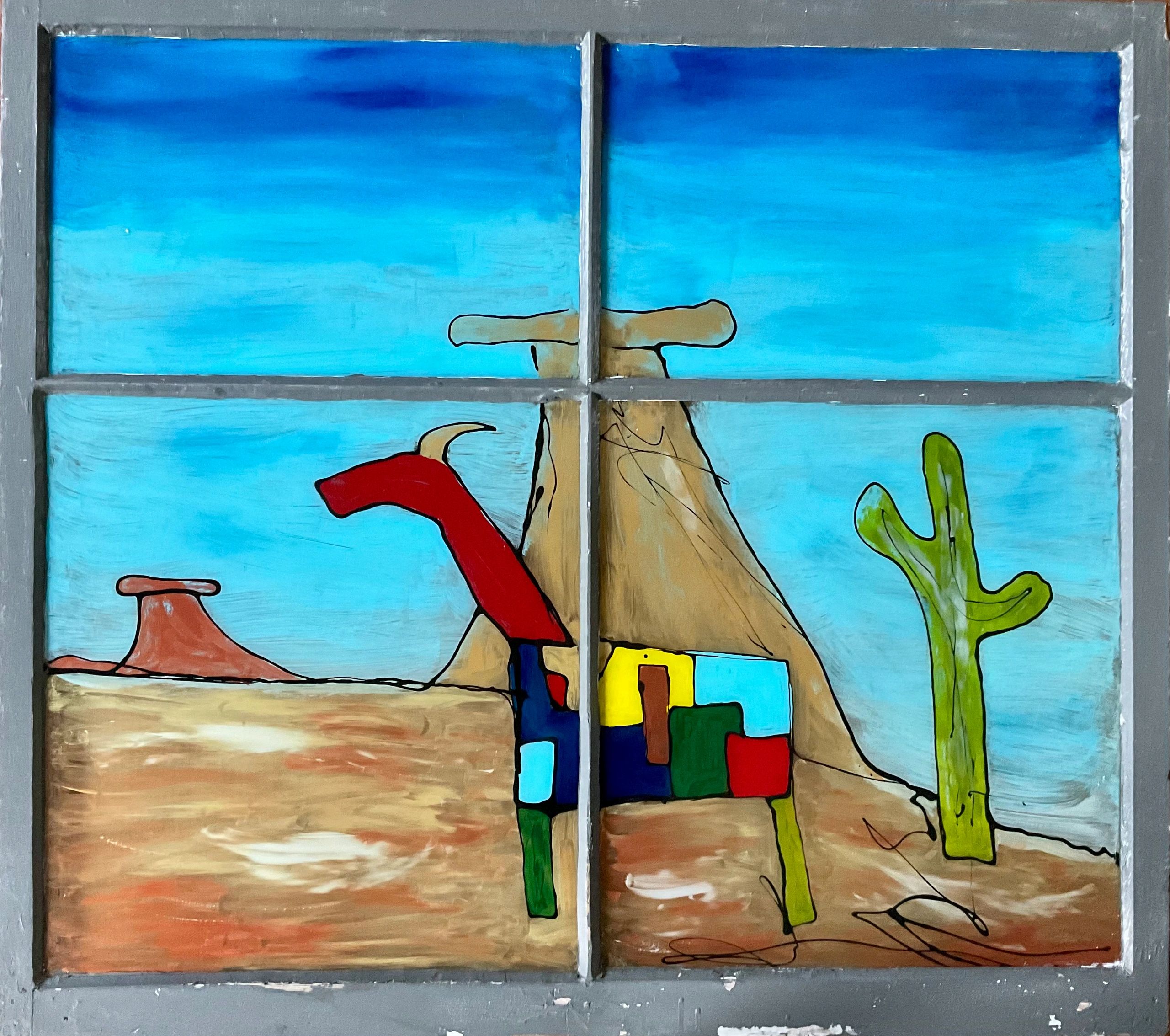 Desert journey (42x48), mixed media on window