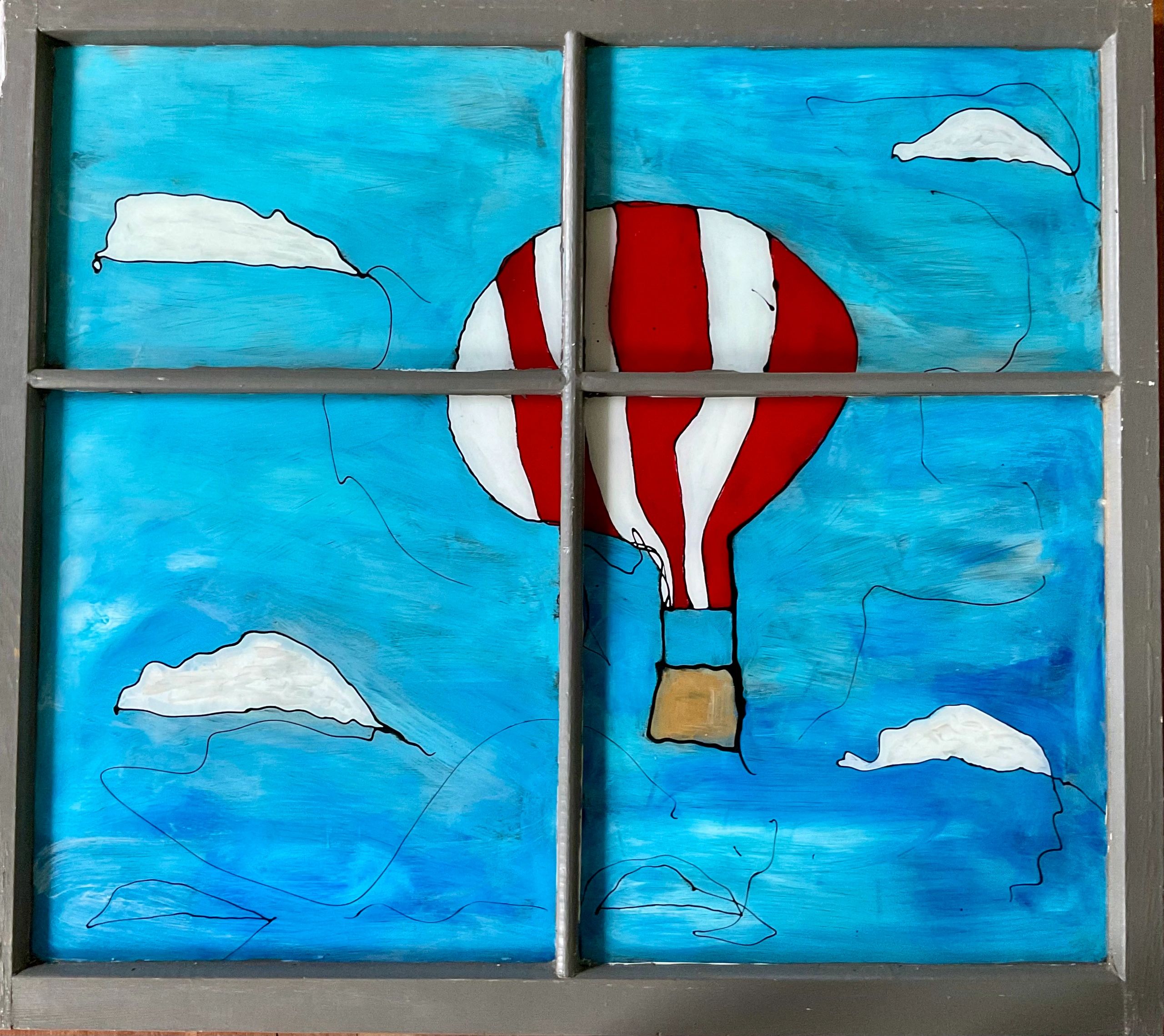 Voyage en mongofiere (42x48), mixed media on window