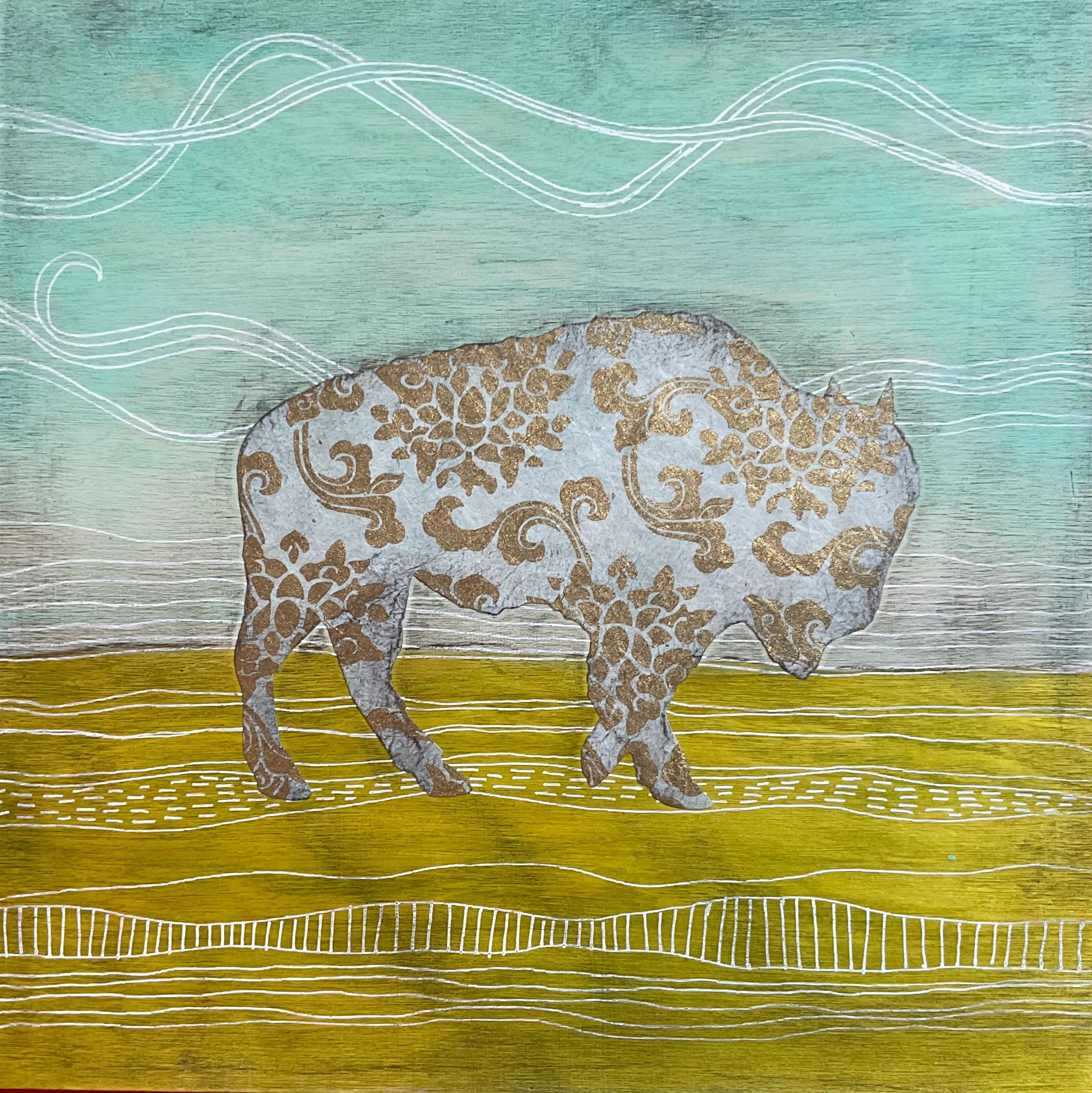 Golden bison (12 x 12), Mixed media on wood (Sold)