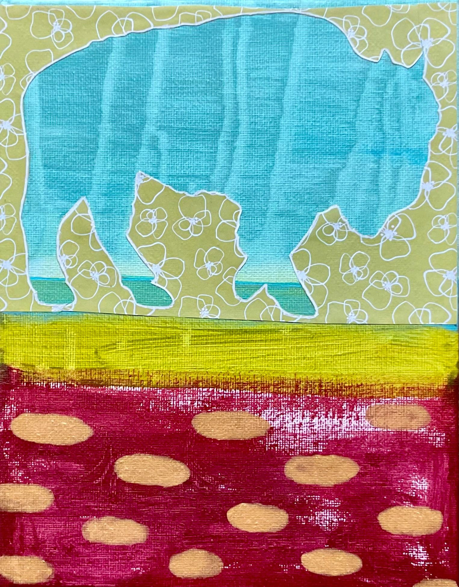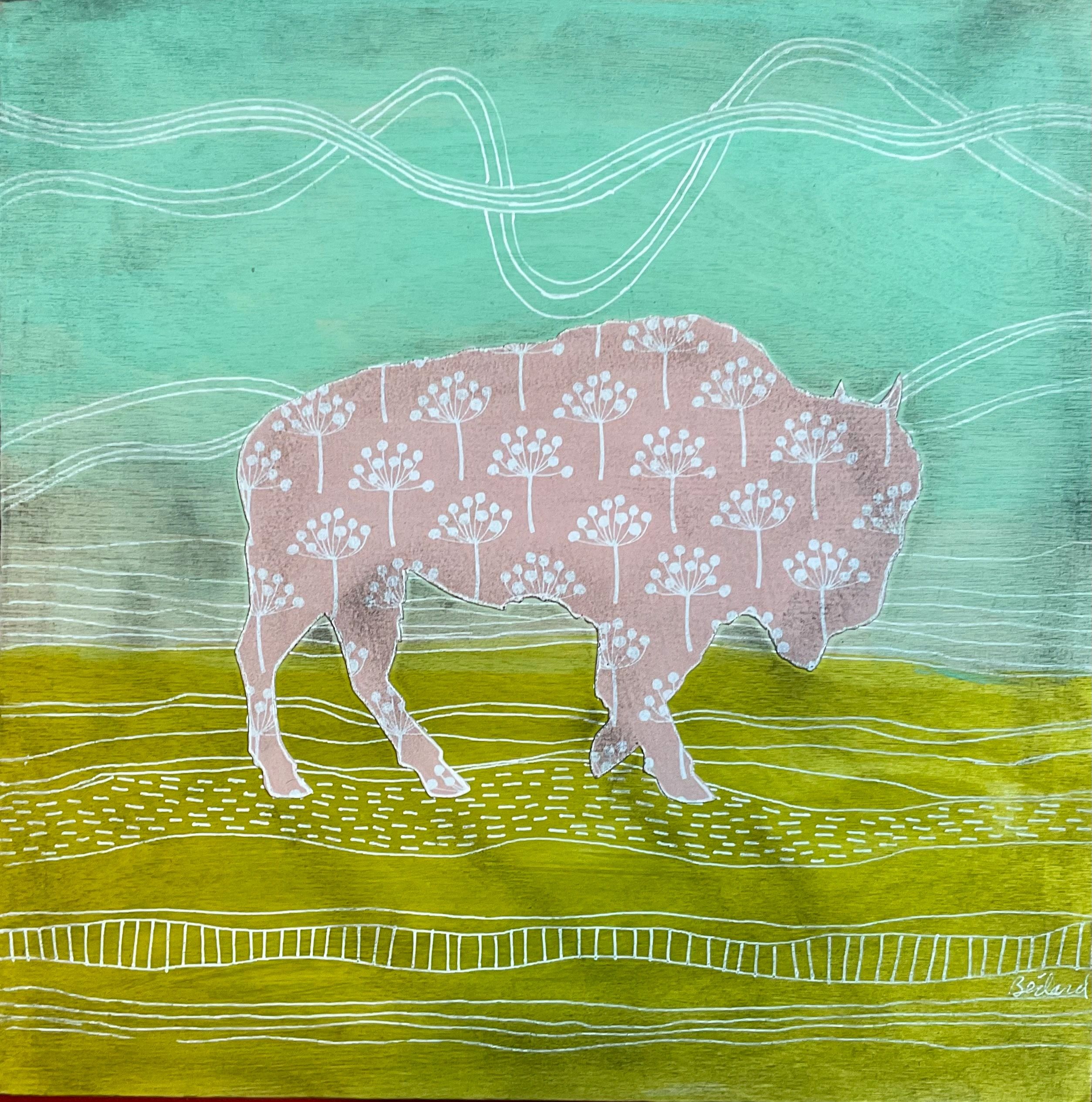 Pink bison (12 x 12), Mixed media on wood (Sold)